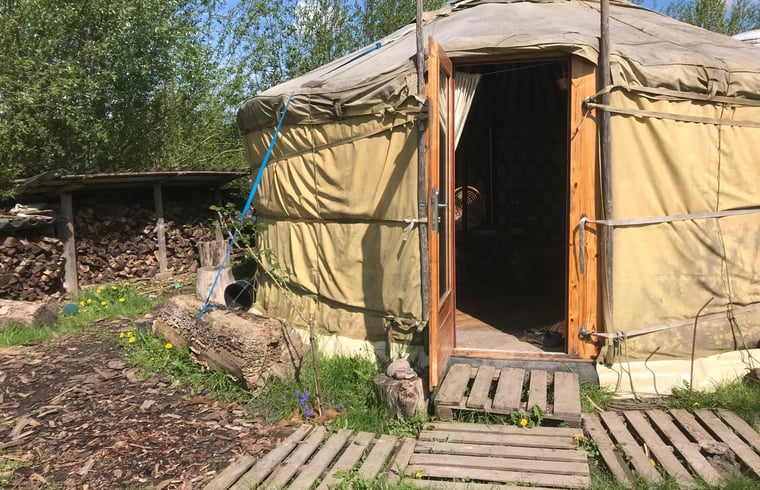 Deze heerlijke yurt staat aan de rand van een biologische pluktuin met volop rust en ruimte. Er is een heel groot tweepersoons bed (waar je ook met twee volwassenen en een kind in kunt) en een extra bedbank. Een kleine maar complete keuken (geen...