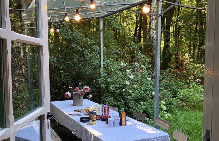 Vrijstaand natuurhuisje, in eigen bos. Voor 4 personen. Het interieur heeft een Ralph Lauren lodge gevoel, met een retro-vintage interieur. Een sfeervol, wat ouder, gezellig rommelig familiehuis. Op de begane grond is een ruime woon/ eetkamer met...